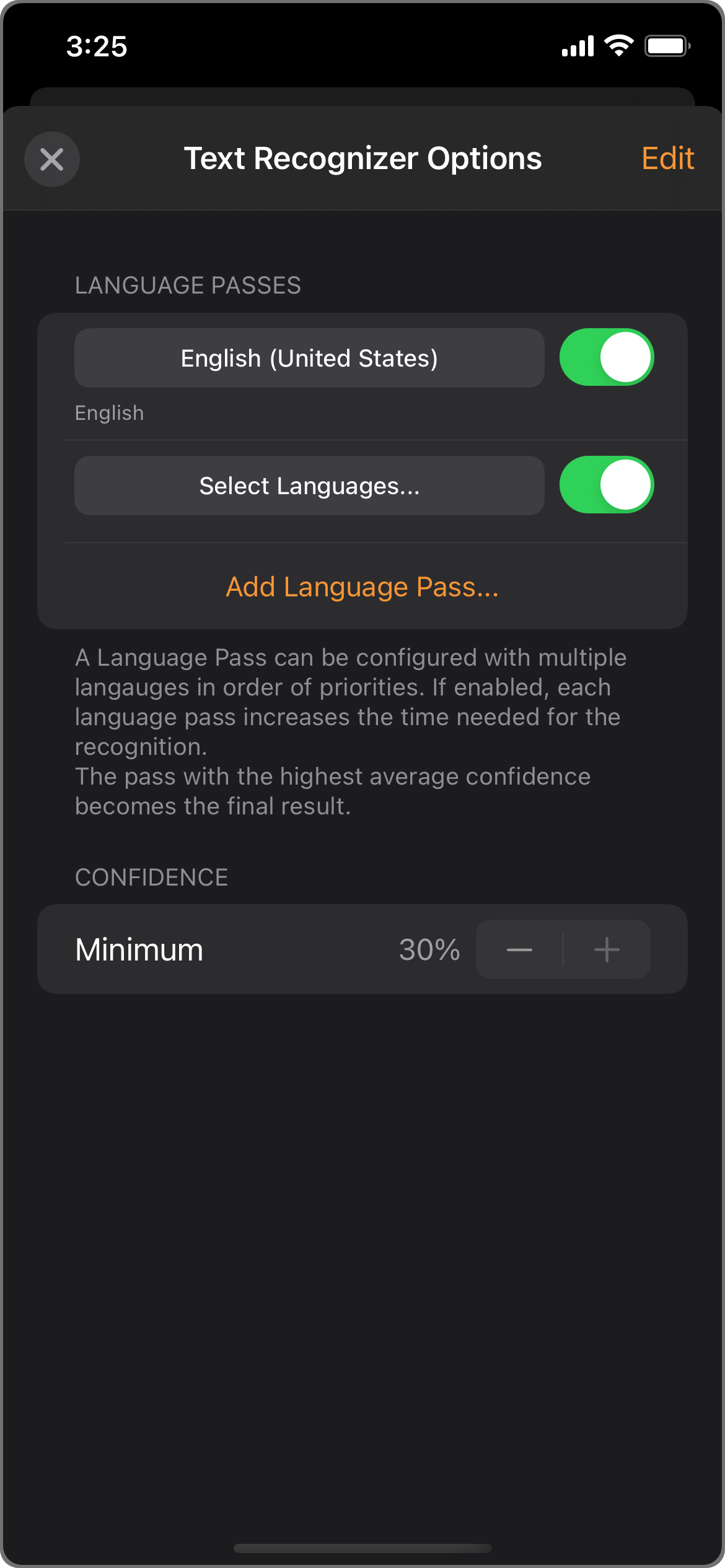 Text Recognizer Options